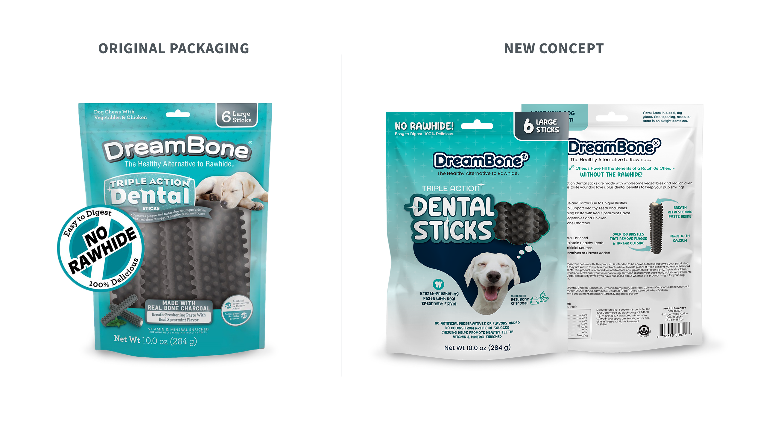 DreamBone® has maintained their existing branding since they were founded in 2008. While the current graphics appeal to consumers, a new look was experimented with to bring a more modern and lively feel to the packaging.