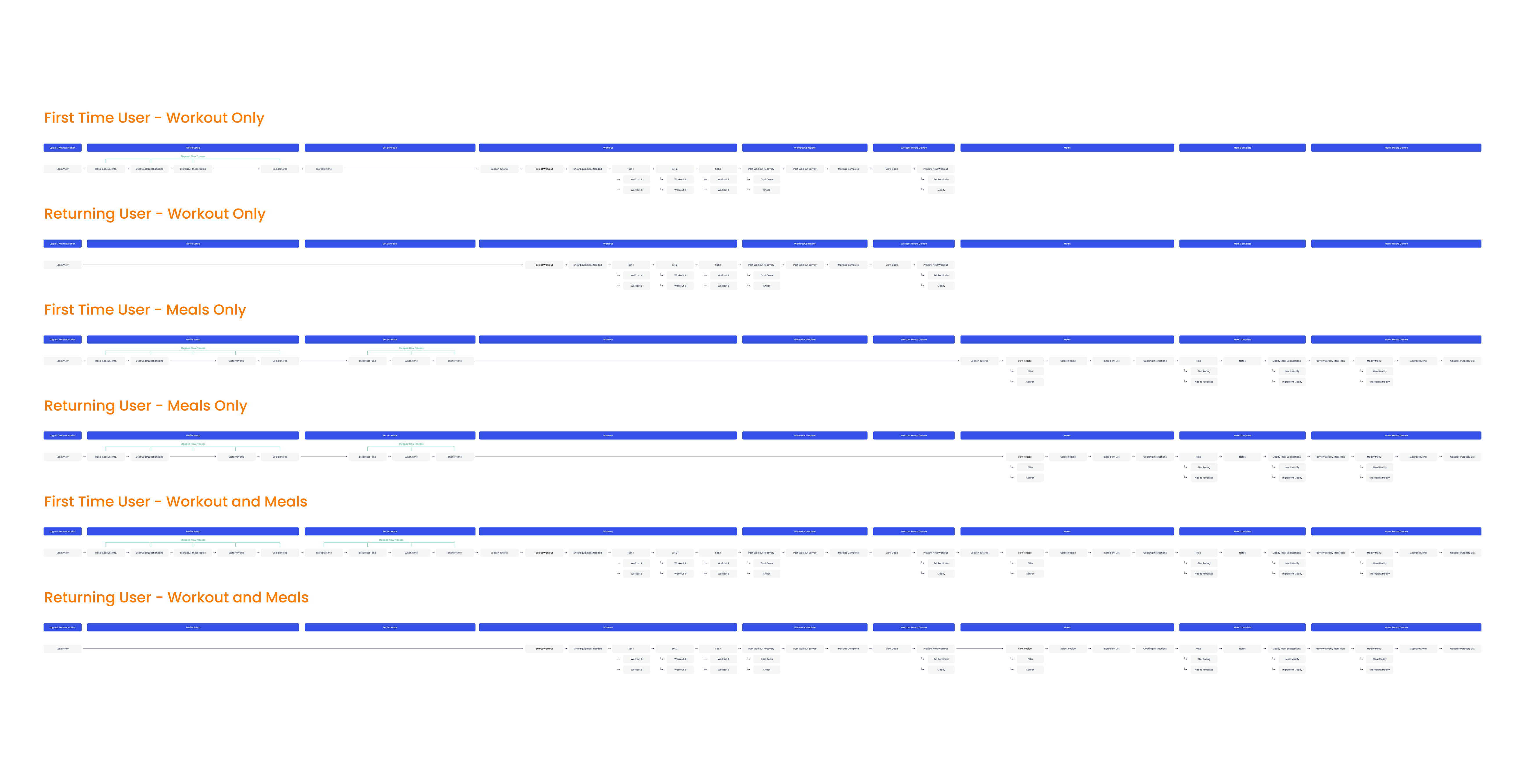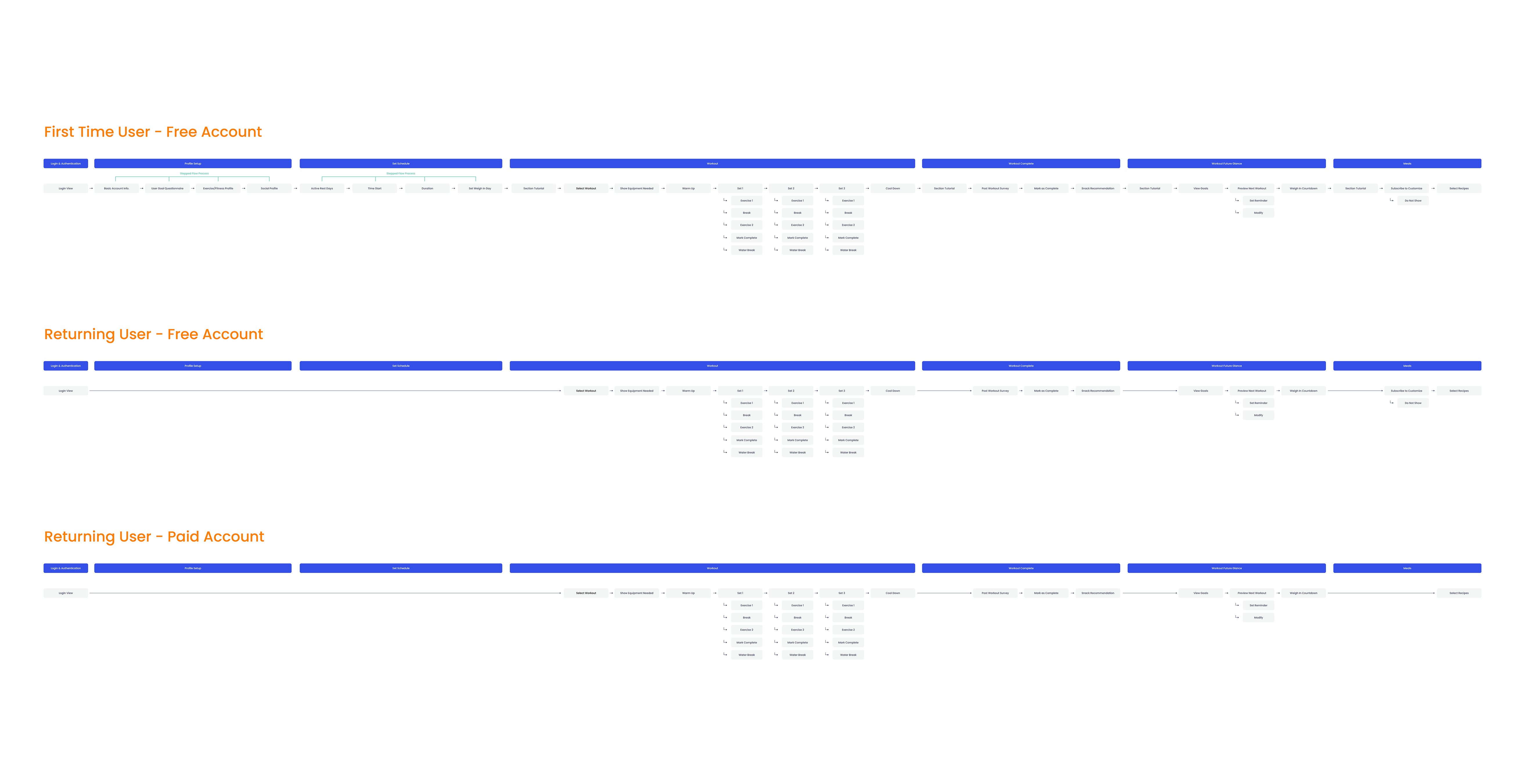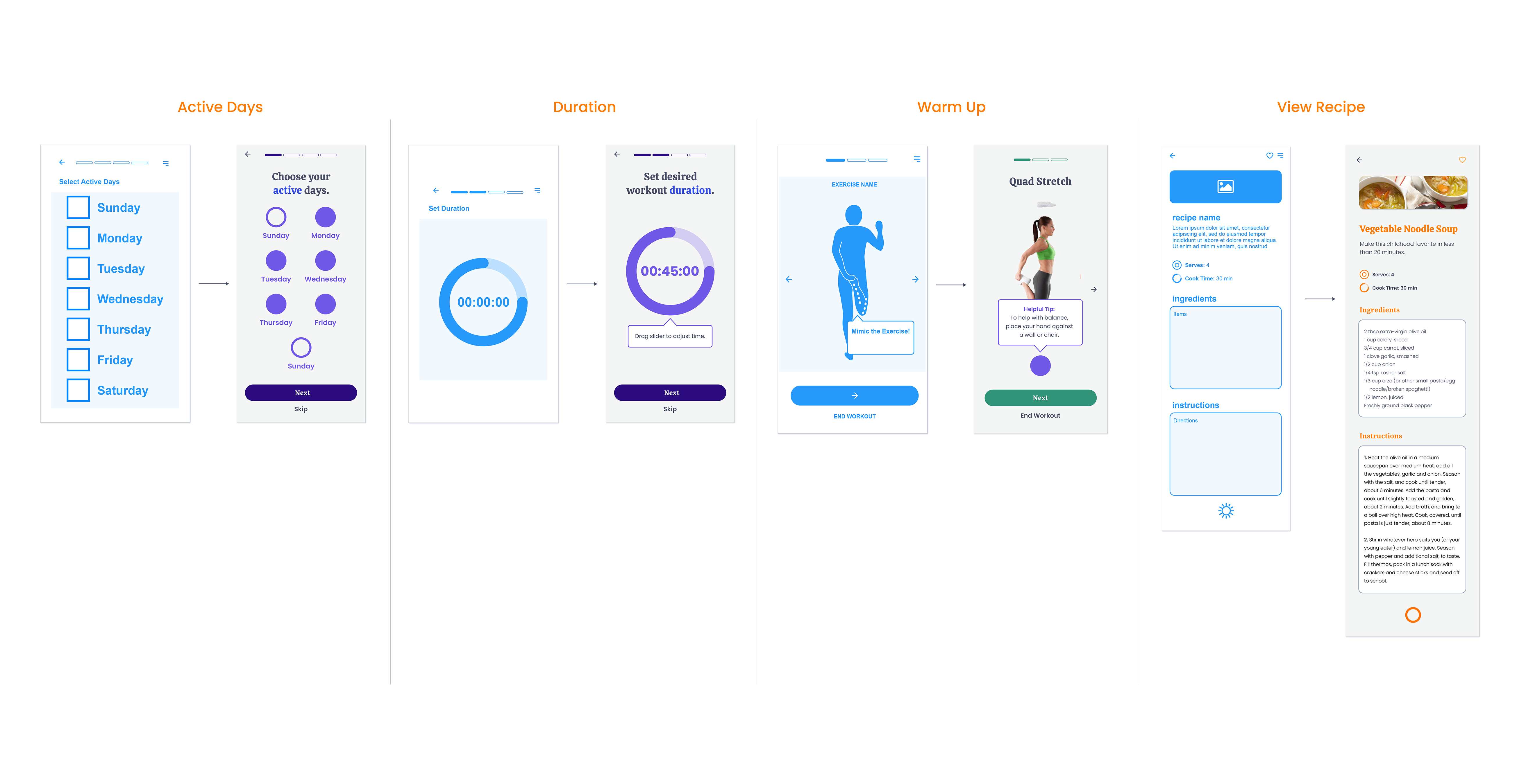 After evaluating the scope of the project, EasyFit narrowed its flow to focus on free customizable workouts for its users. While recipe books would still be available on the free plan, users would need to pay for a customizable diet plan.