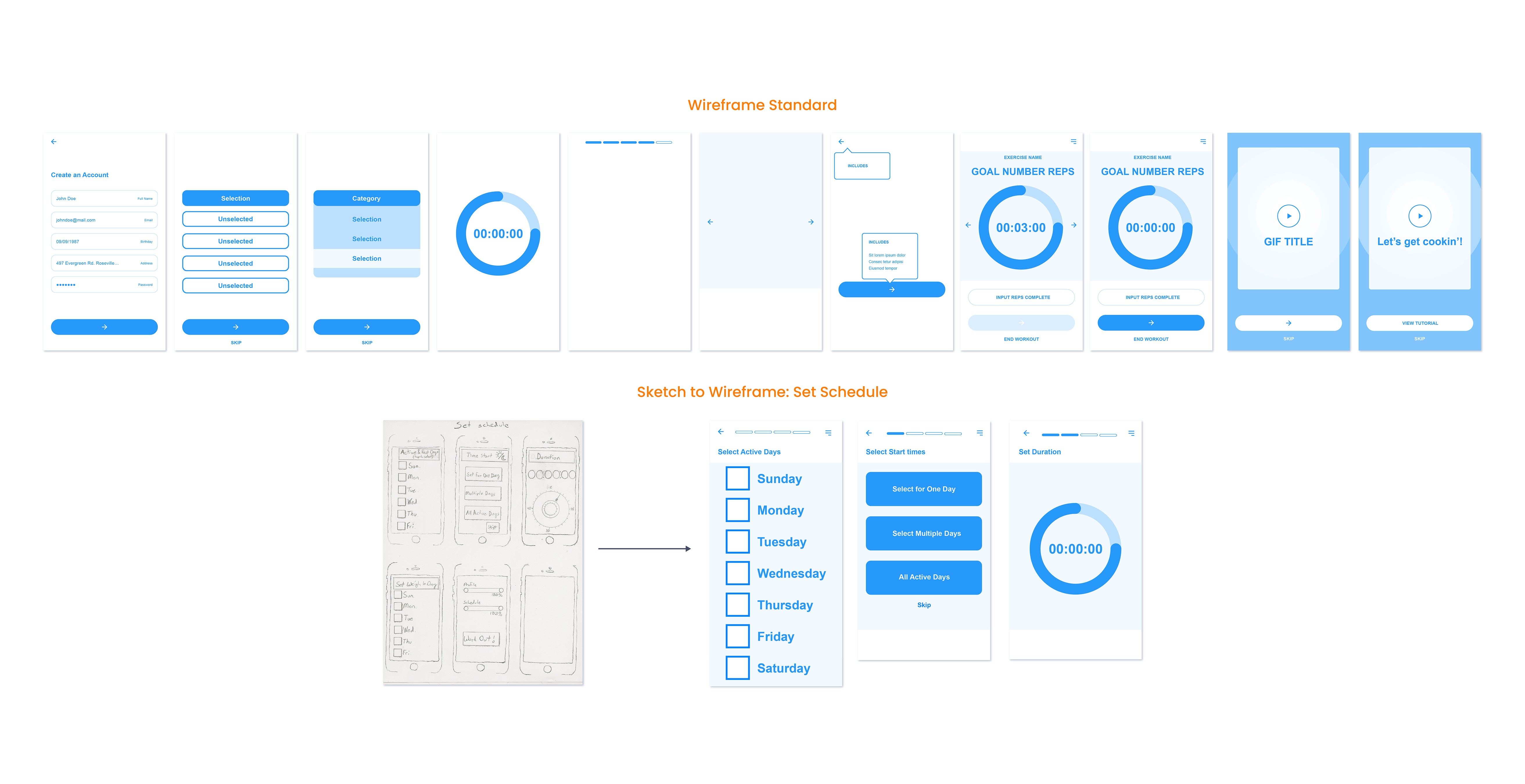 Based on preliminary sketches and discussion of successful components/components that needed modification, a wireframe standard was created to keep aesthetics consistent across mulitple team members.