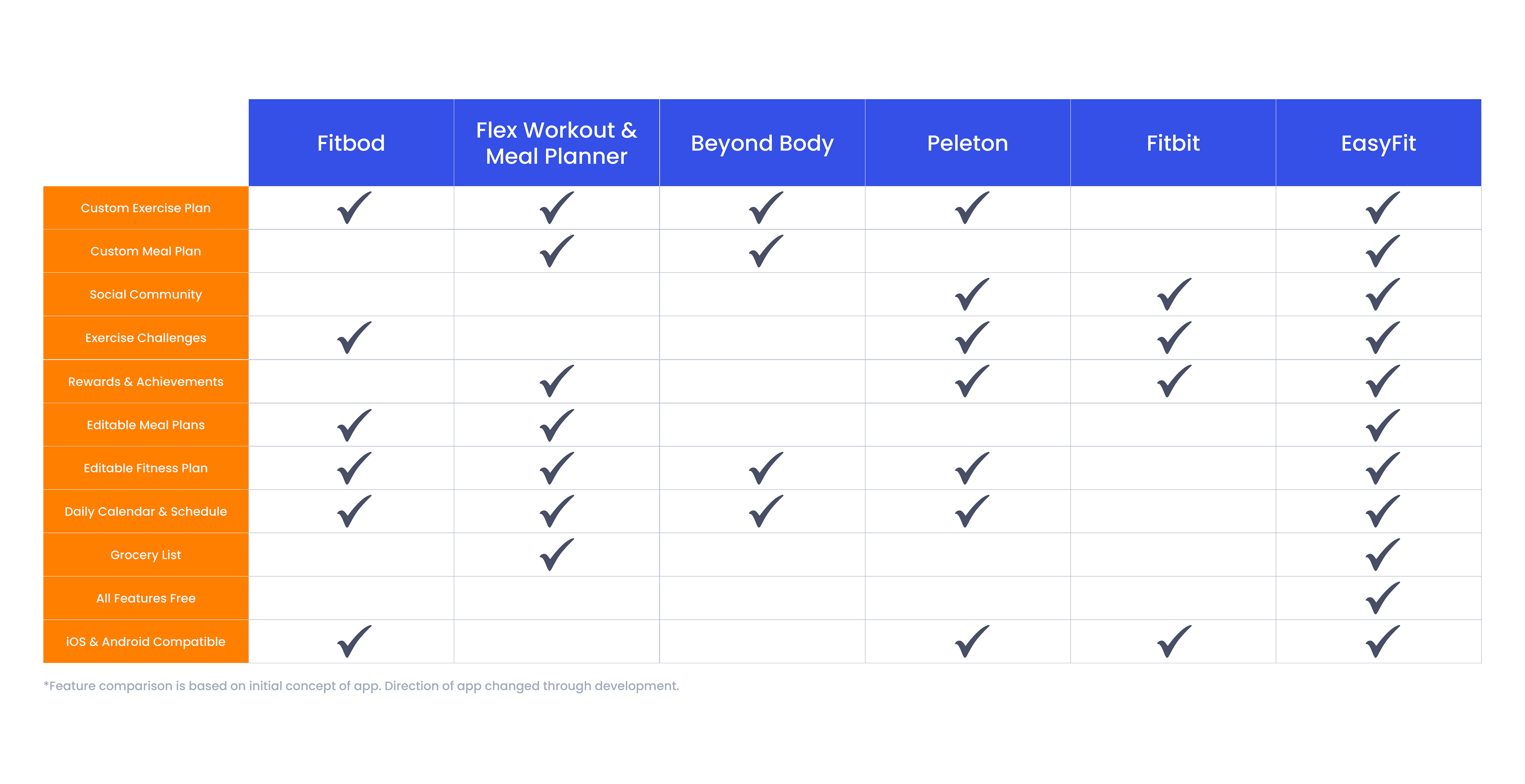 NOTE: Feature comparison is based on intial concept of app. Direction of project changed through development.