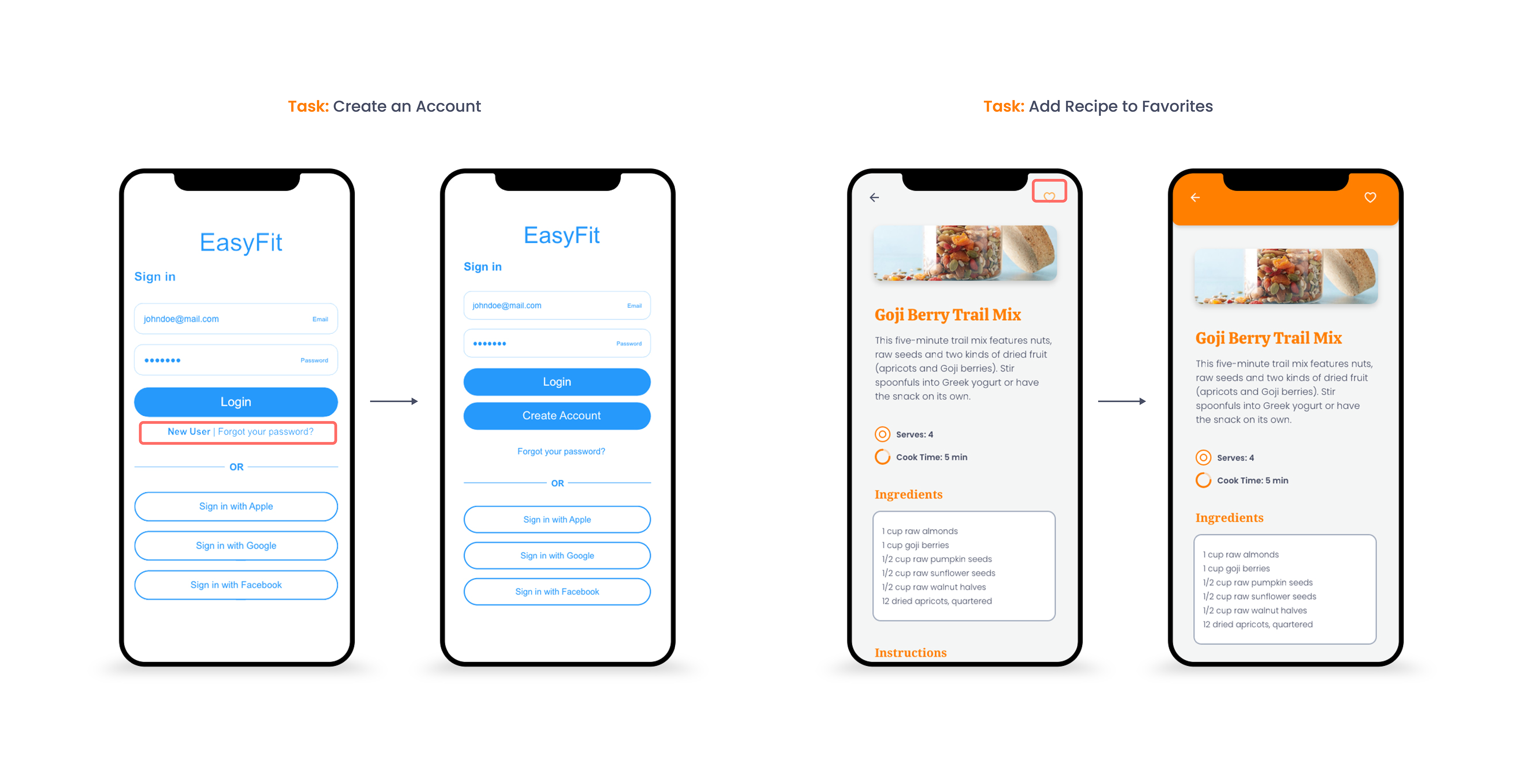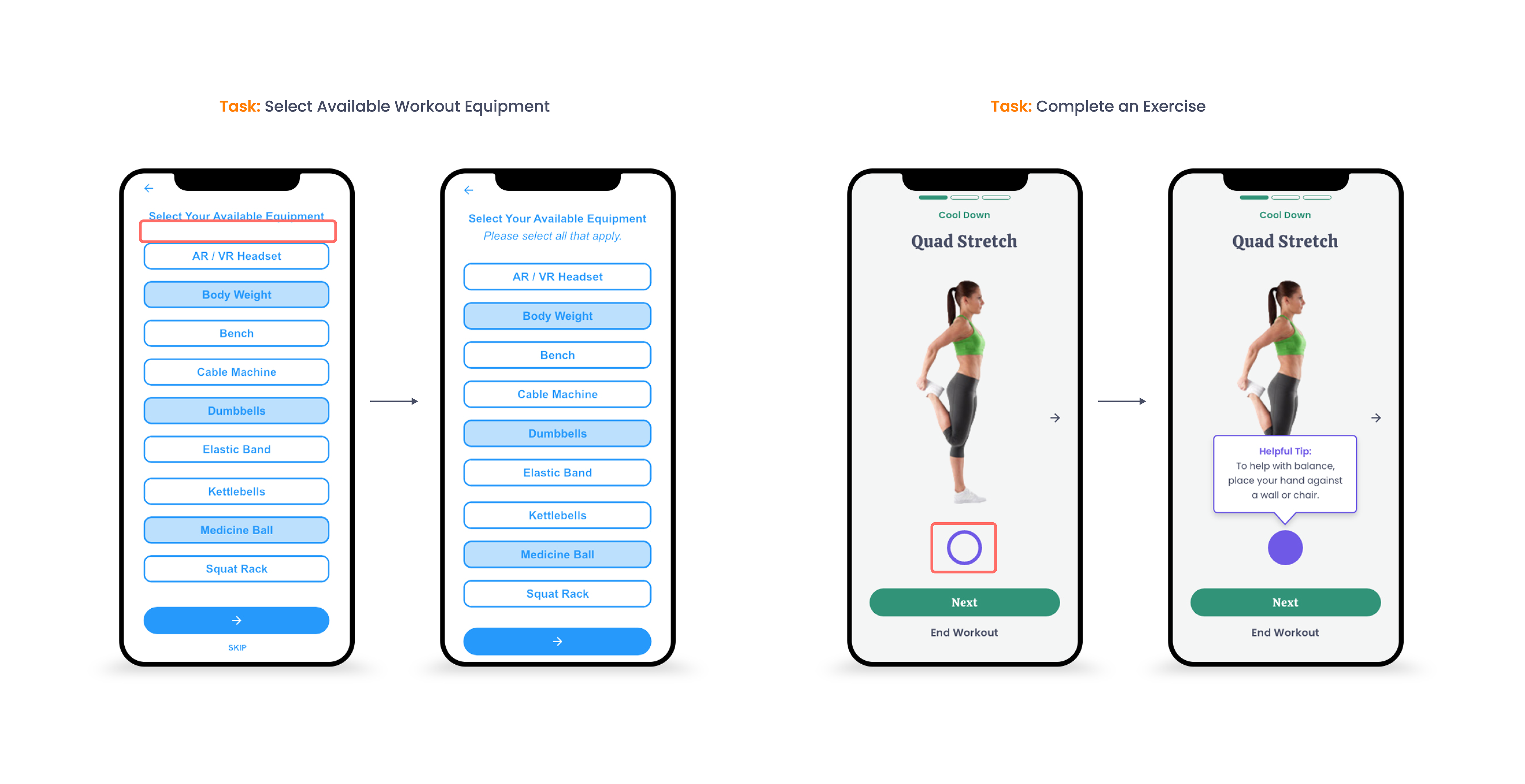 EasyFit was tested using wireframes and high fidelity prototypes.