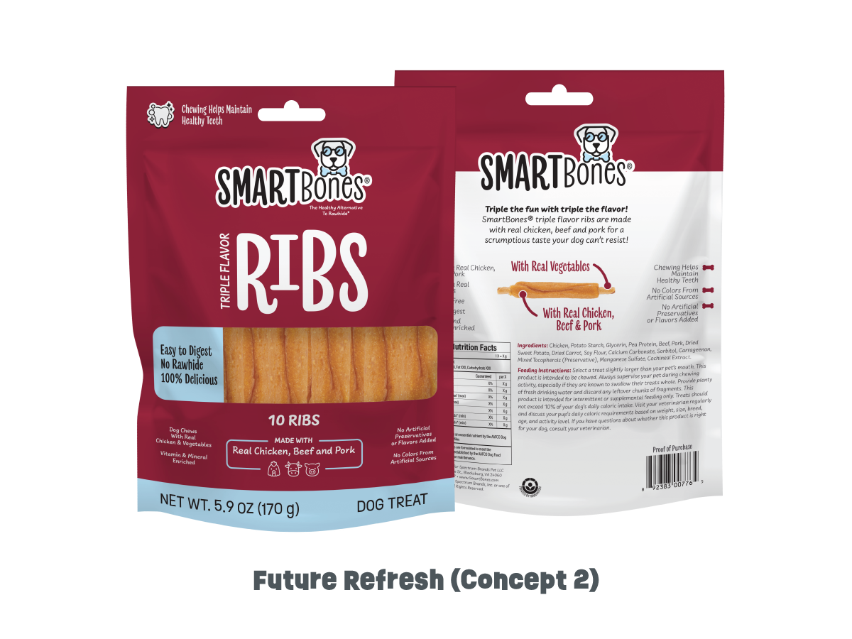 Original SmartBones® packaging designs are the intellectual property of Spectrum Brands, Inc. Future Refresh concepts remain the intellectual property of Rachael Hollis unless and until such concepts are formally presented to and produced by Spectrum Brands, Inc. All work is displayed for portfolio purposes only.